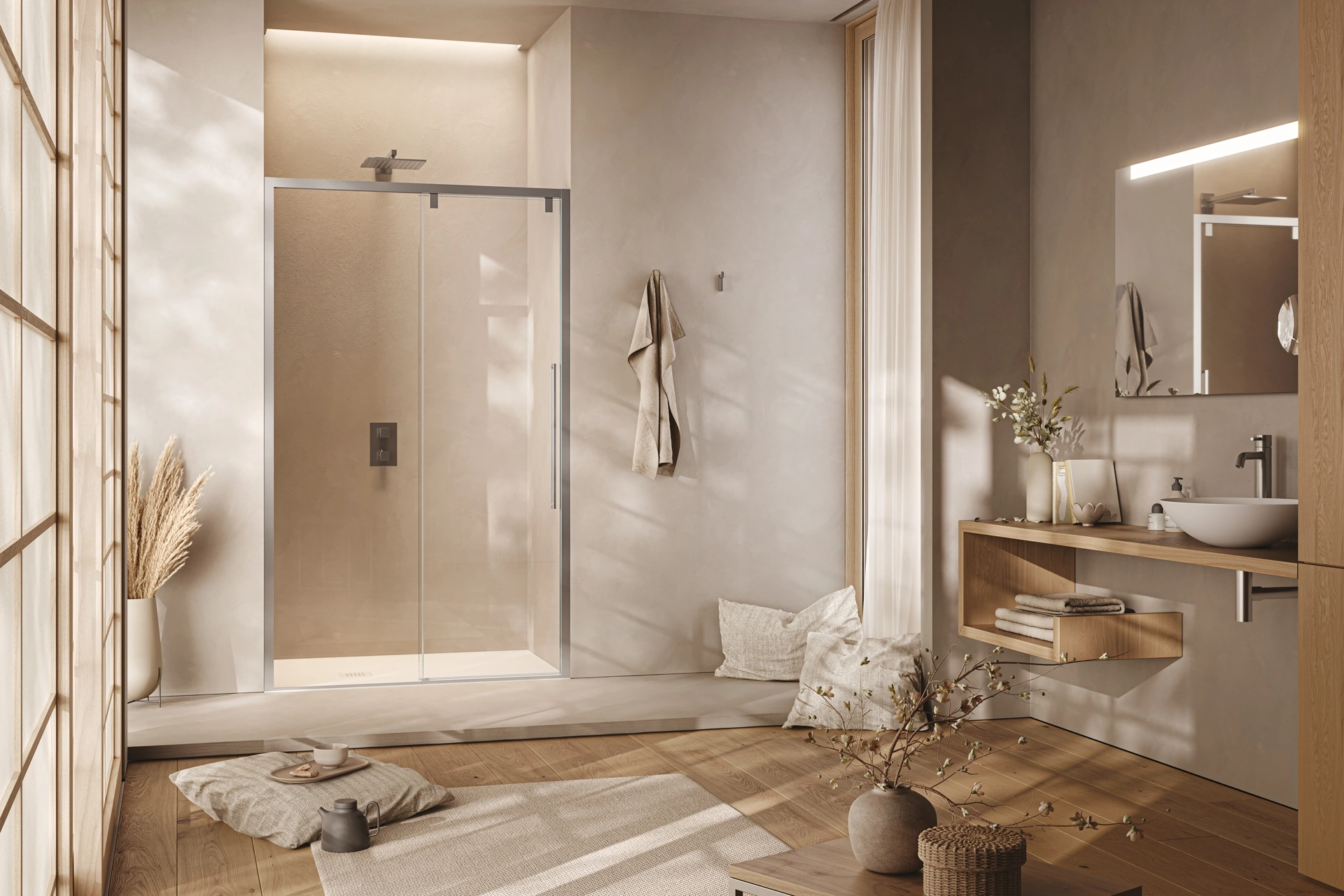 box doccia Acrux Scorrevole di Samo: scopri l'Arredo Bagno in vetro moderno e arreda la stanza del benessere.