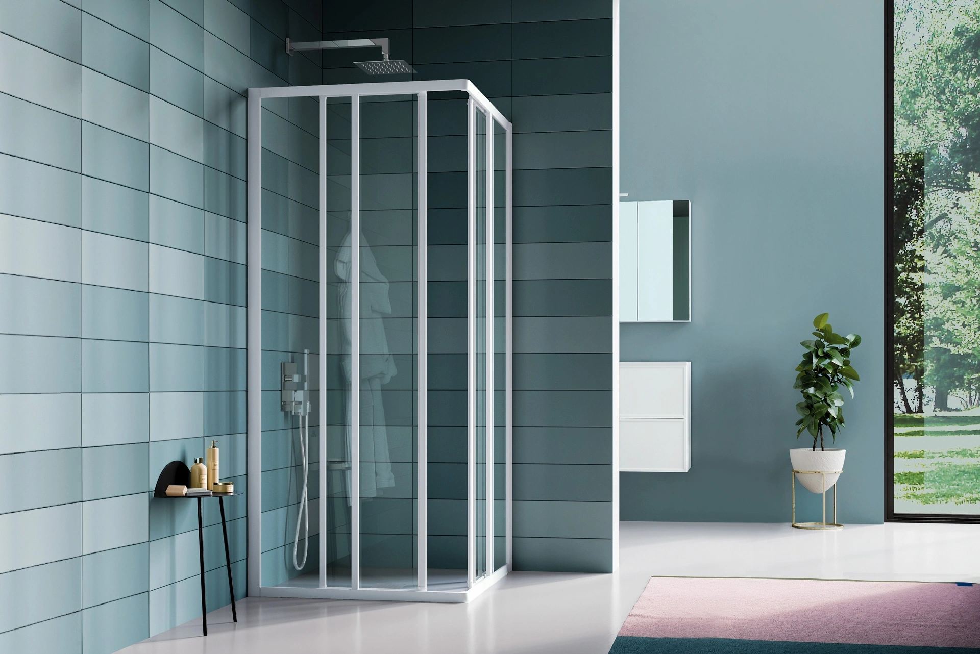 Arreda il bagno di casa moderno perfettamente con America Angolare, box doccia e accessori in vetro di Samo.