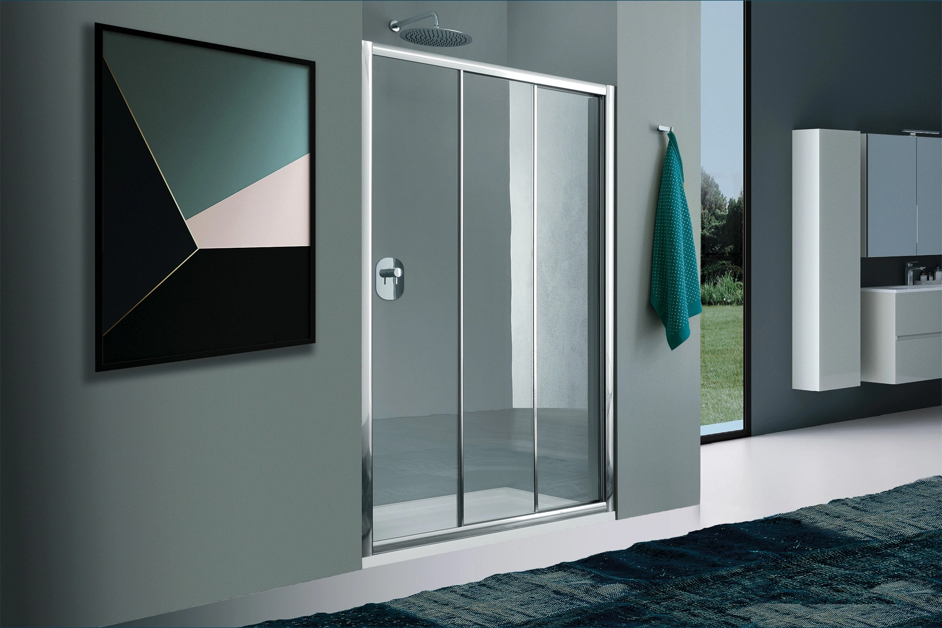 box doccia in vetro del marchio Samo: clicca e scopri l'arredo bagno moderno America Quattro Scorrevole per la stanza del benessere.