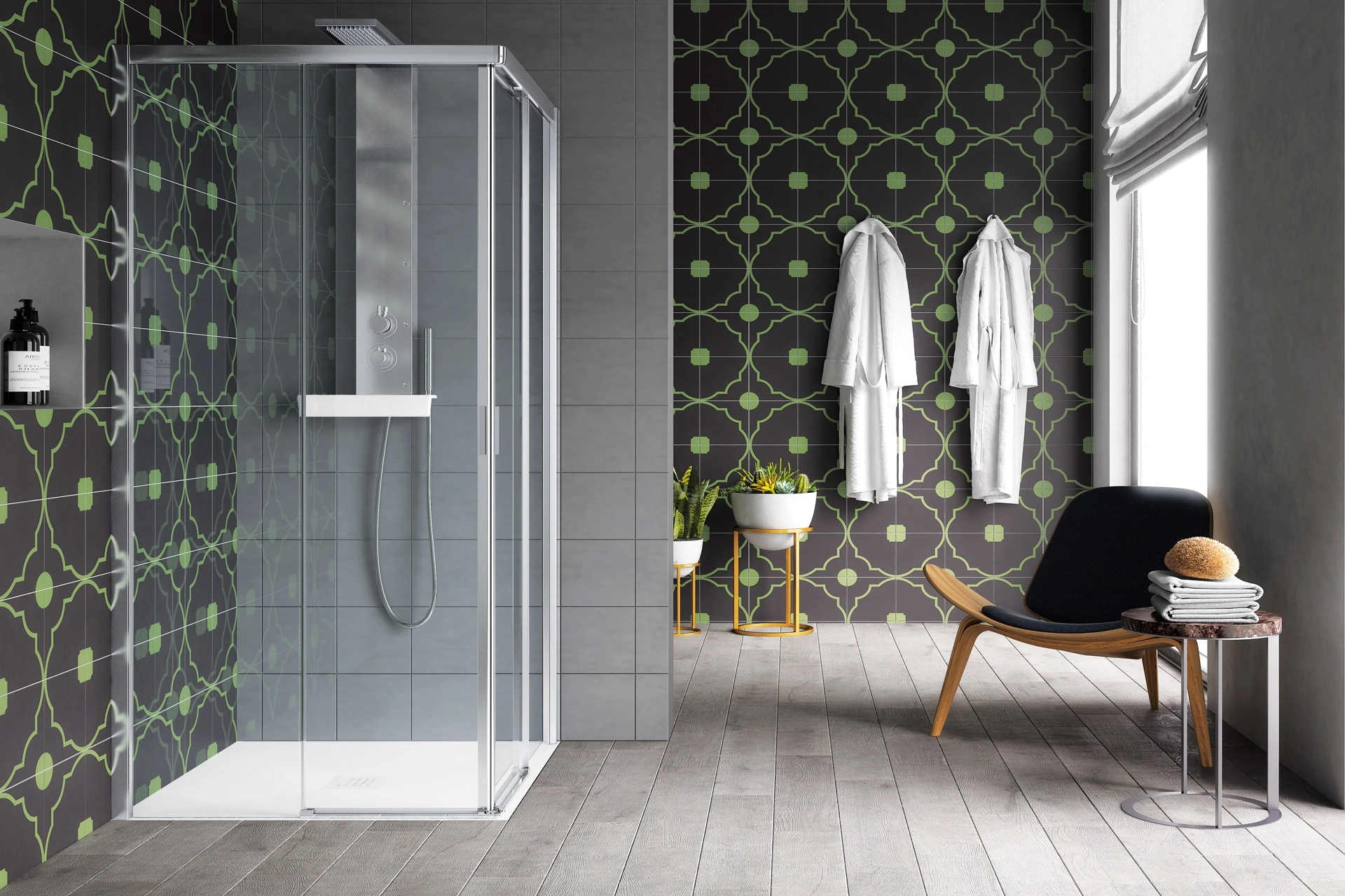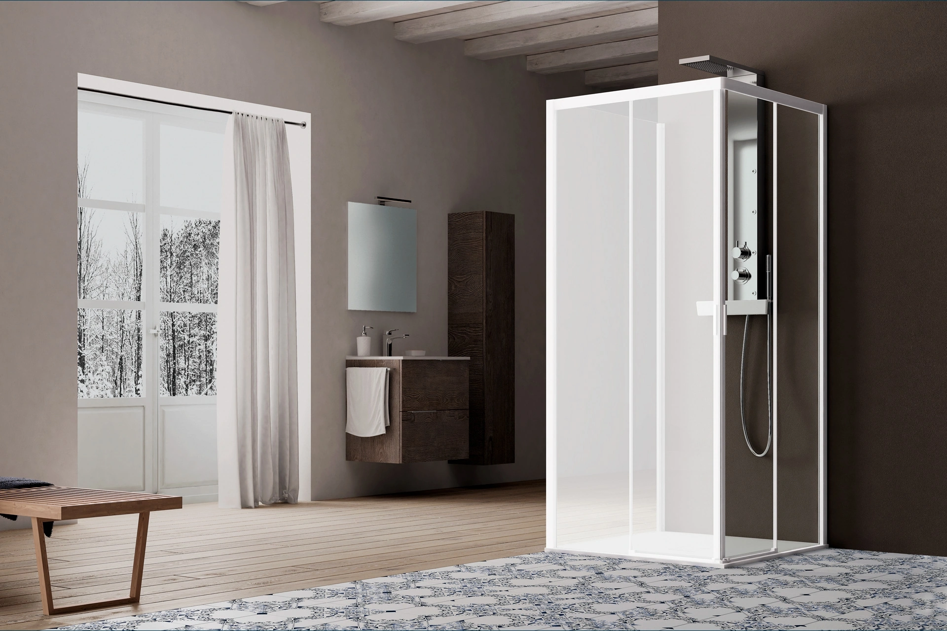box doccia in vetro della firma Samo: clicca e scopri l'arredo bagno moderno America Quattro SP Angolare per il bagno di casa.