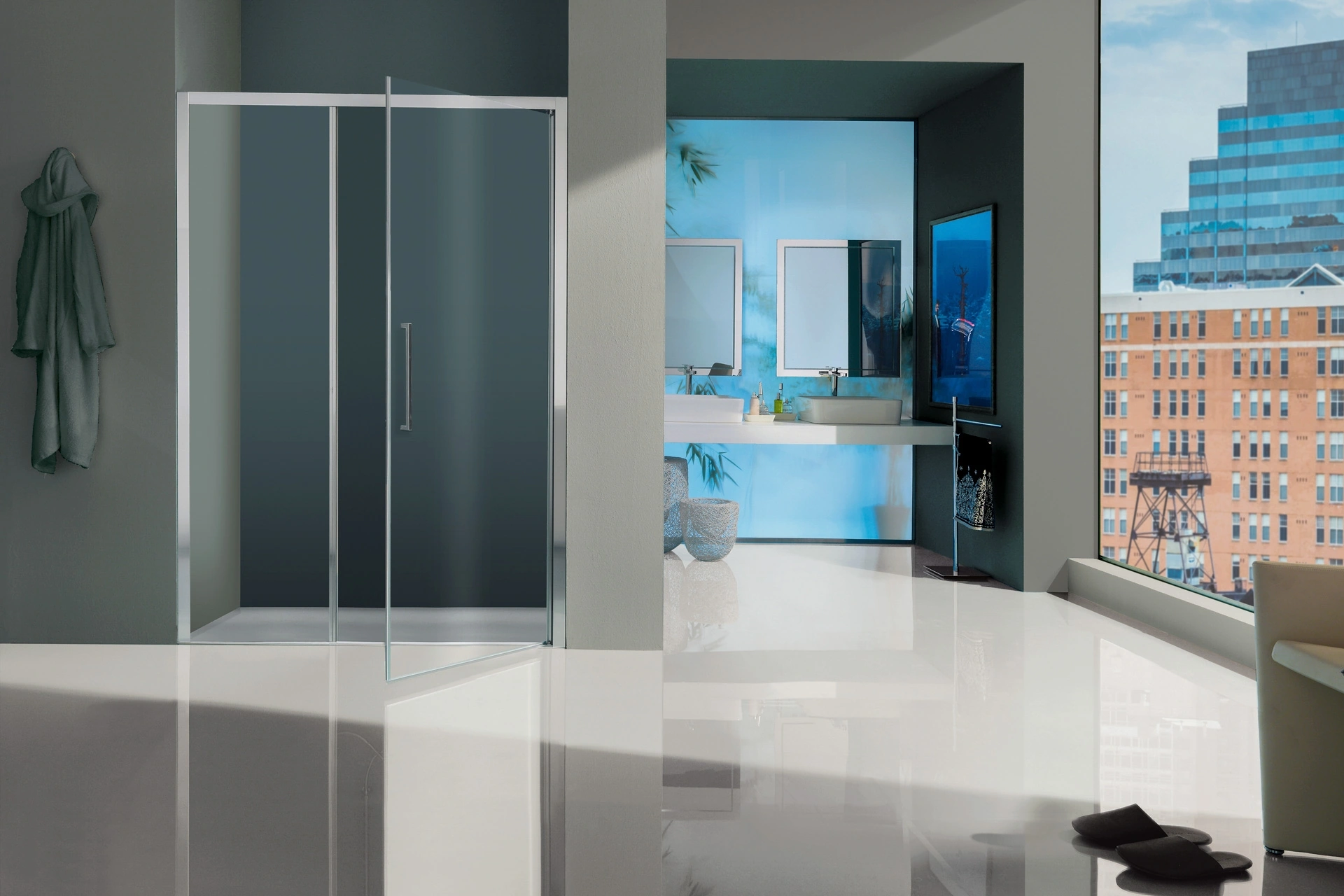 box doccia Europa SP Battente di Samo: scopri l'Arredo Bagno in vetro moderno e arreda il bagno di casa.