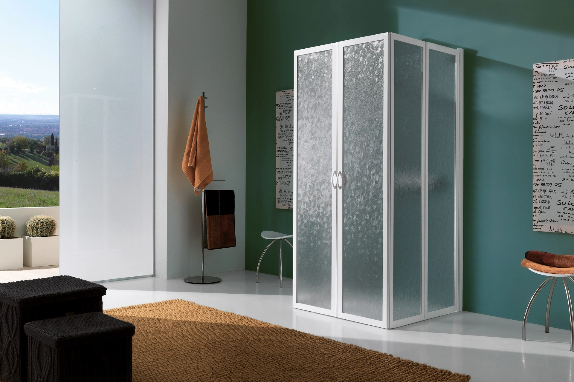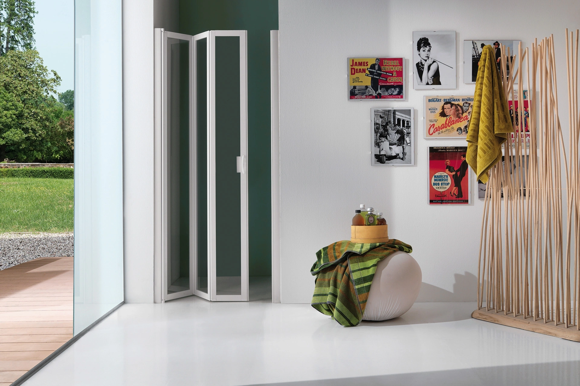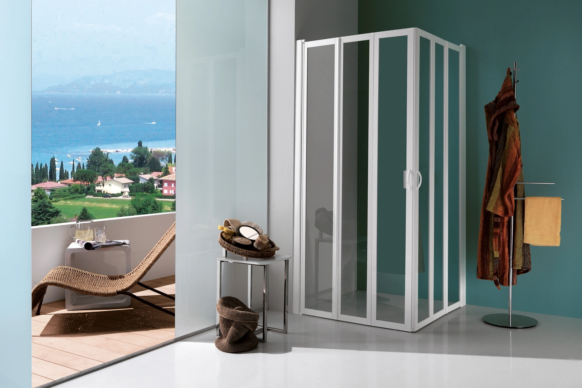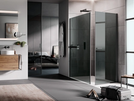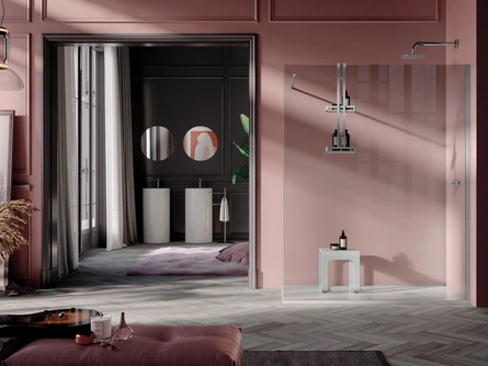 Arreda la stanza del benessere moderno perfettamente con Flex Soffietto, box doccia e complementi in vetro di Samo.