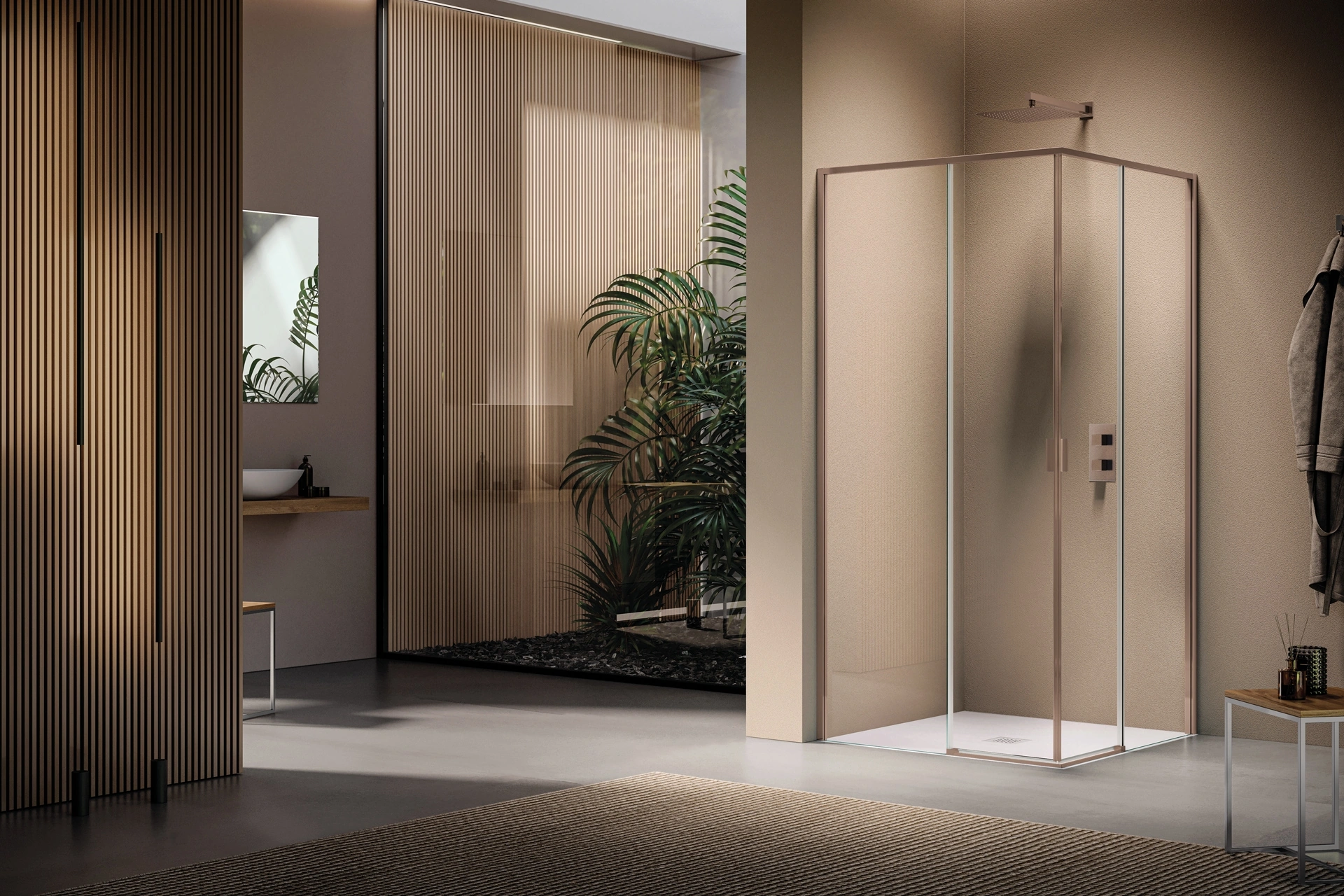box doccia in vetro della marca Samo: clicca e scopri l'arredo bagno moderno Pyxis Angolare per il tuo bagno.