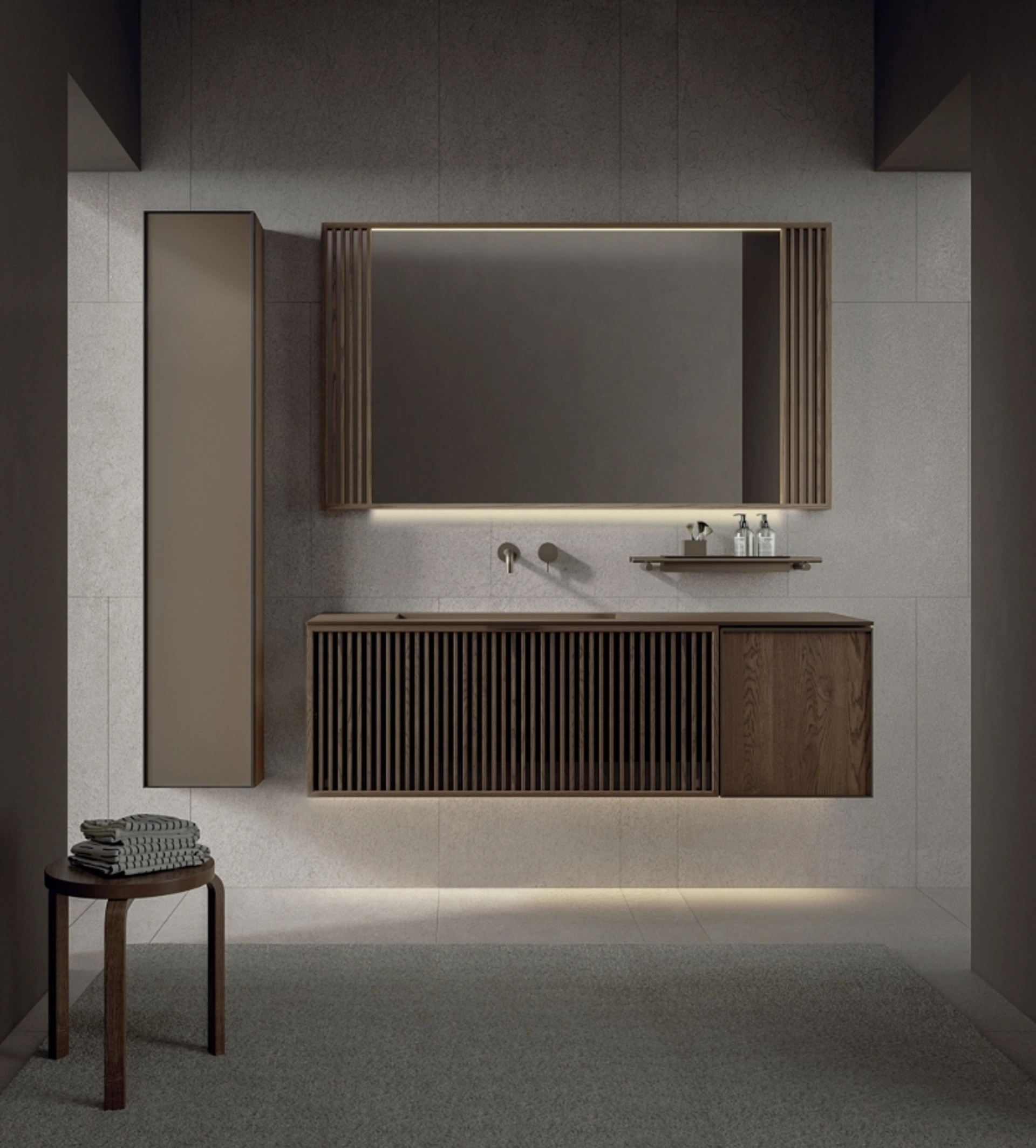 Arreda il bagno di casa design ottimamente con Quari New 03, mobili bagno sospesi e accessori in legno di Novello.