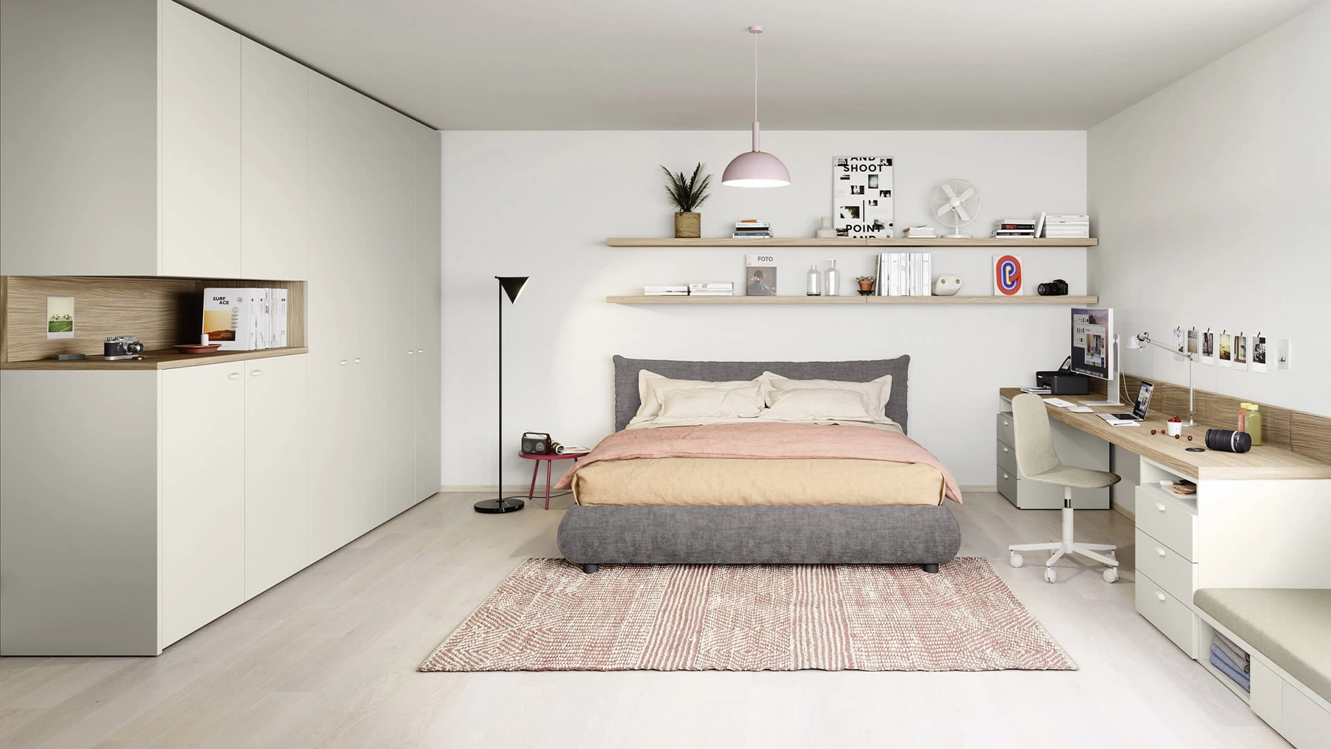 Camerette componibili per ragazzi: scopri il modello in melaminico Roller di Nidi per stanzette moderne.