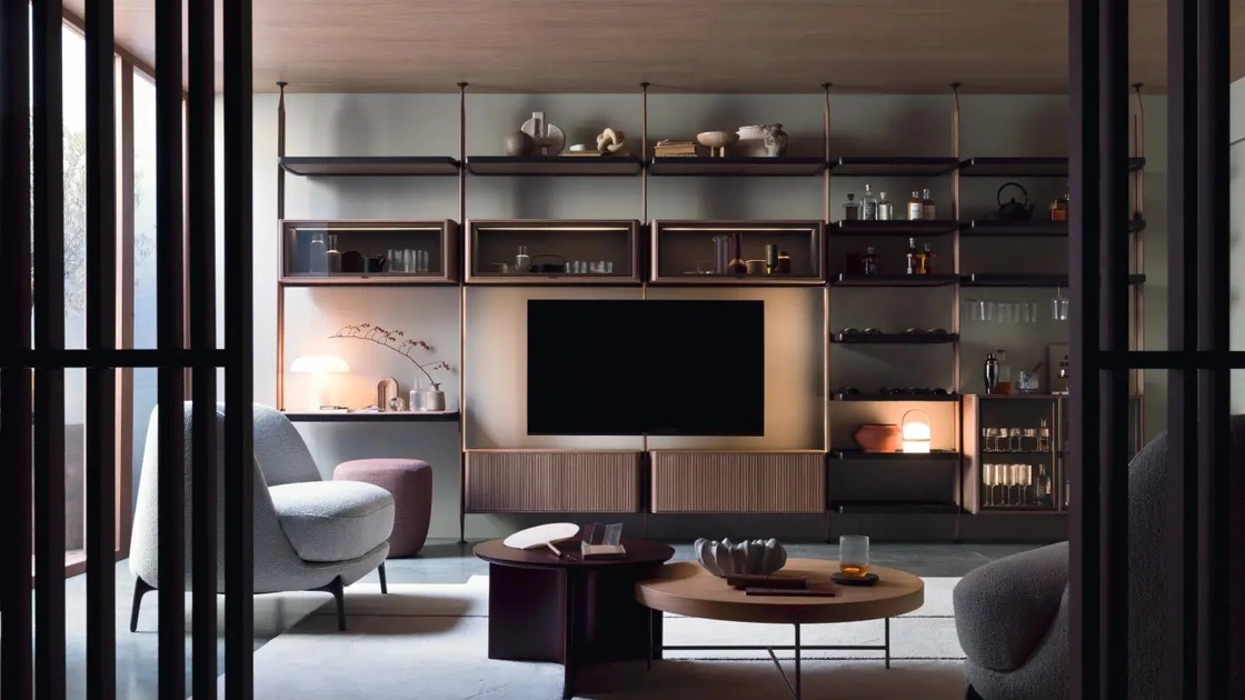 Se desideri completare un soggiorno operativo e pratico dalle linee moderne, ti presentiamo la parete attrezzata Dedalo Novamobili.