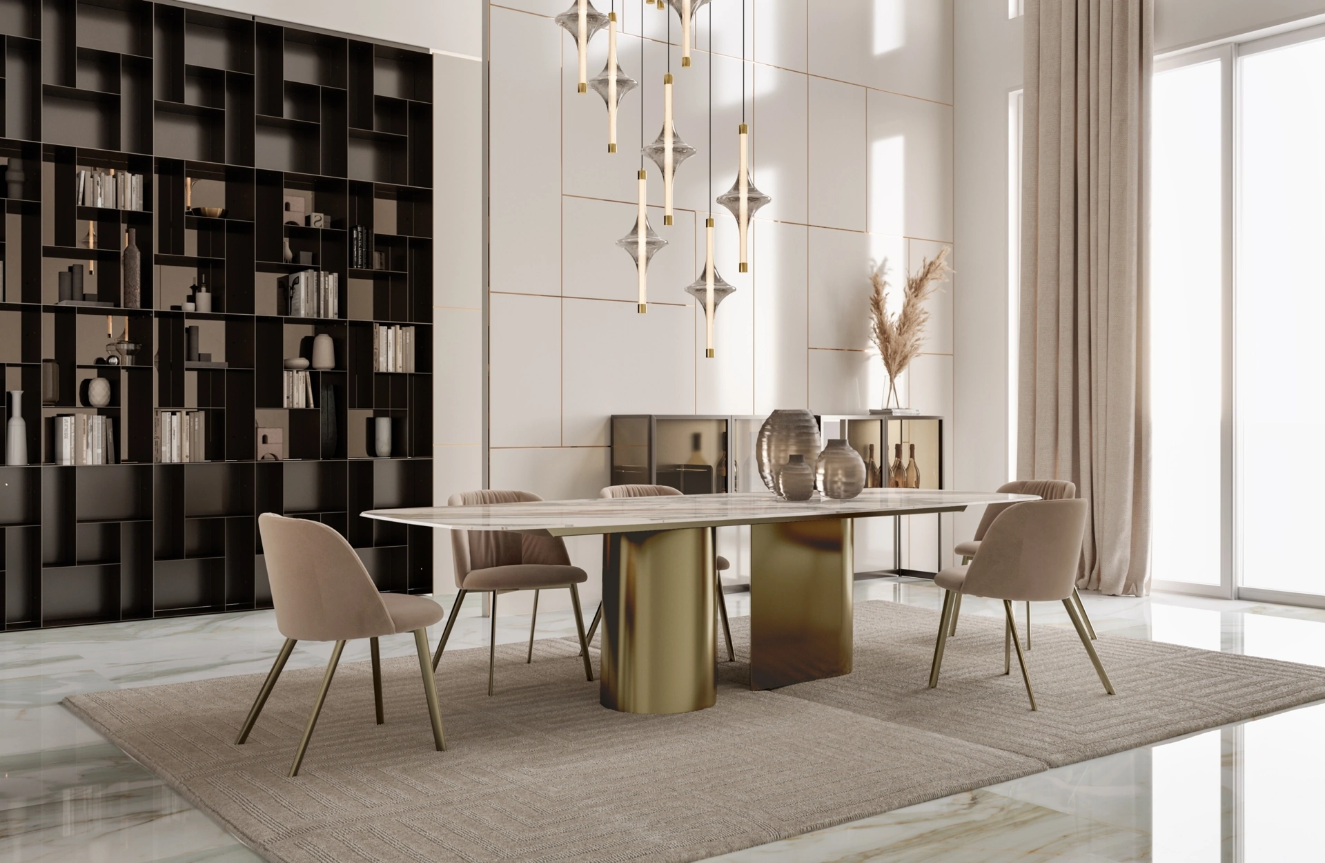 Tavolo Kimono di Bontempi: realizzato in materiali di prima scelta è connotato dalle linee decise del top e da un basamento elegante e raffinato. Se desideri un tavolo da pranzo di elevata qualità, contattaci e ricevi informazioni e preventivi sul modello mostrato in foto. Il noto e conosciuto marchio Bontempi, leader nella realizzazione di mobili in gres, ha scelto per la sua linea un'ampia gamma di materiali, linee e tonalità. Ideali per dare vita a degli abbinamenti unici con sedute e complementi design, i Tavoli allungabili dell'azienda sono soluzioni tra le più originali in commercio, ideali per il soggiorno e la zona cucina.