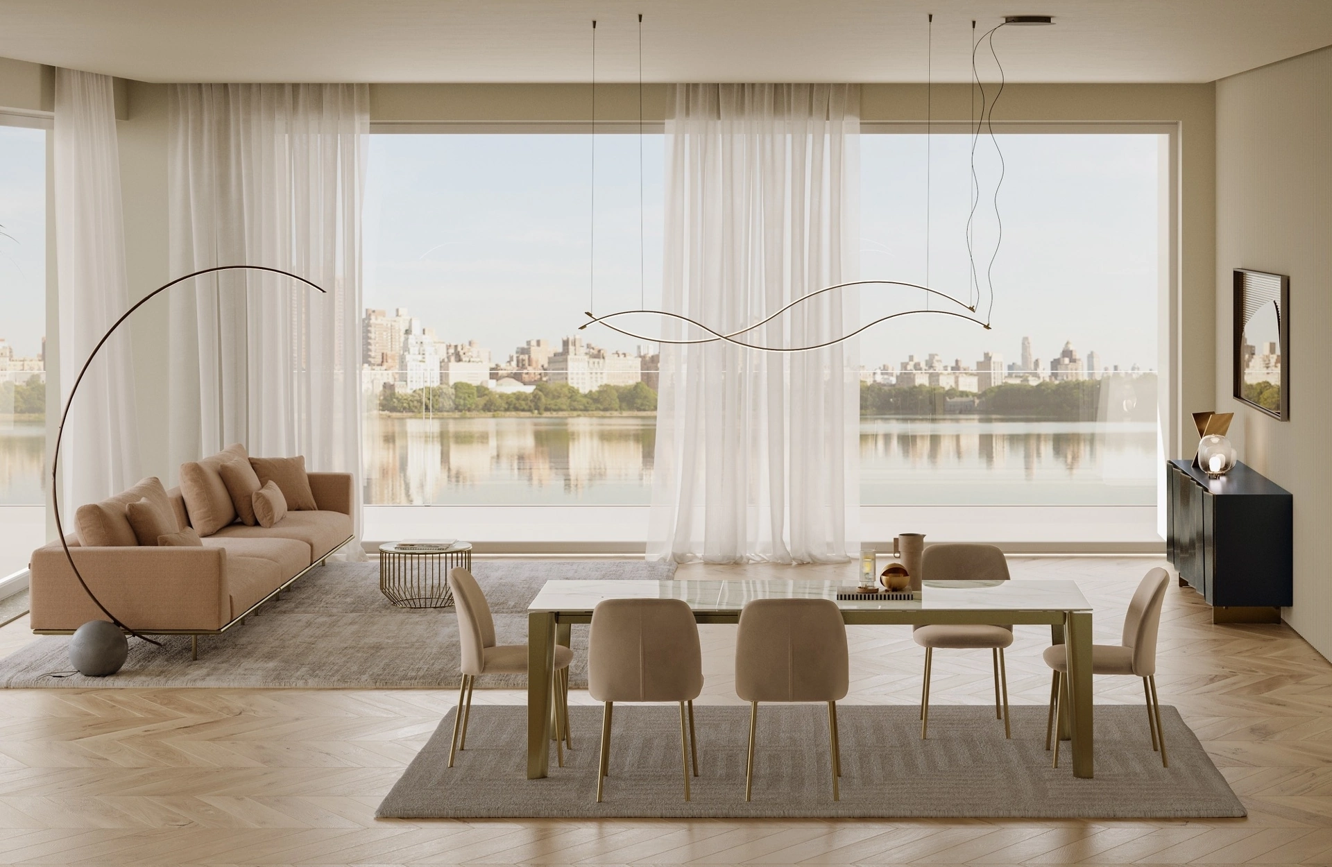 Se desideri tavoli allungabili moderni, ecco a te il modello da pranzo in gres Etro XXL del brand Bontempi.