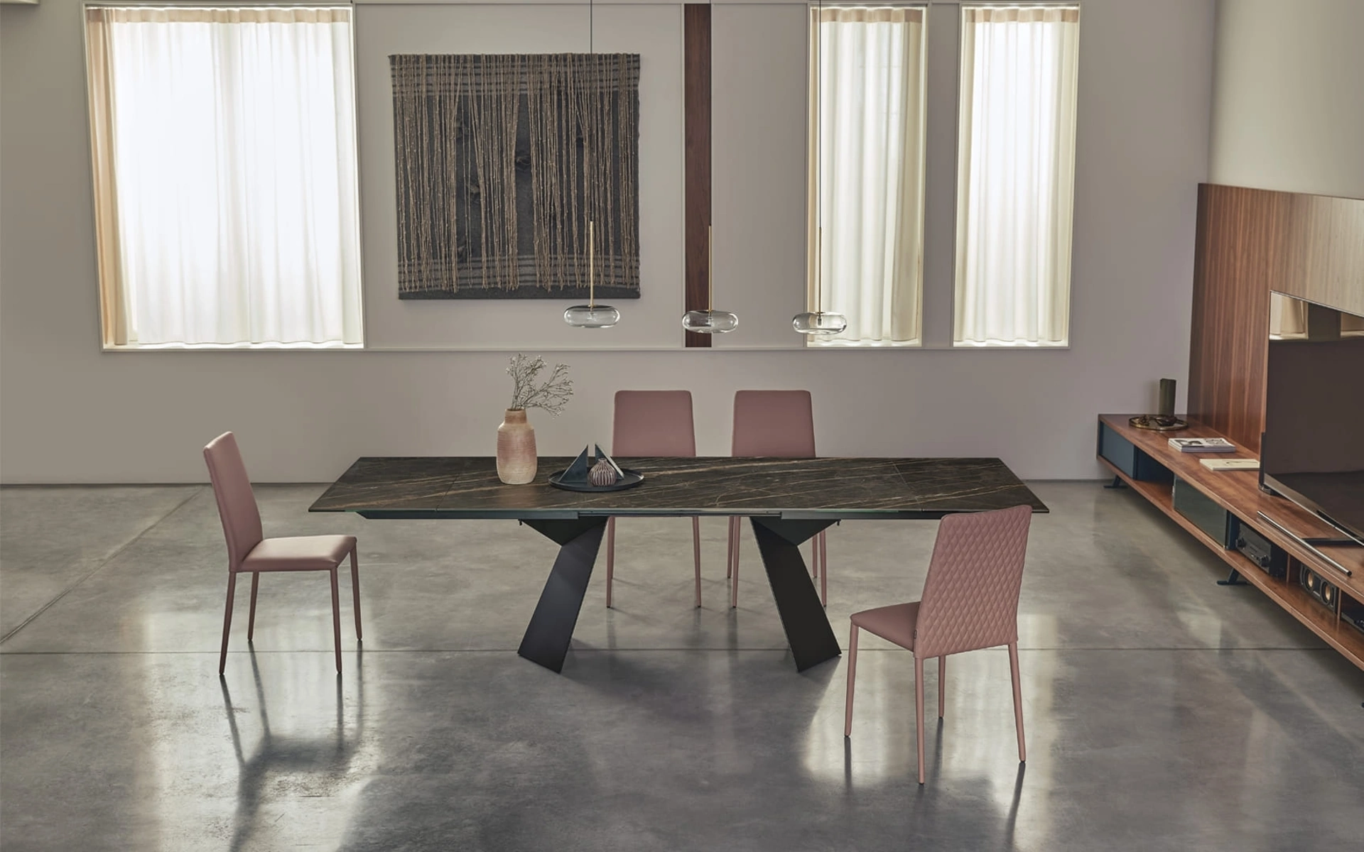 Se sei alla ricerca di tavoli allungabili moderni, ecco a te il modello da pranzo in gres Fiandre Allungabile della firma Bontempi.