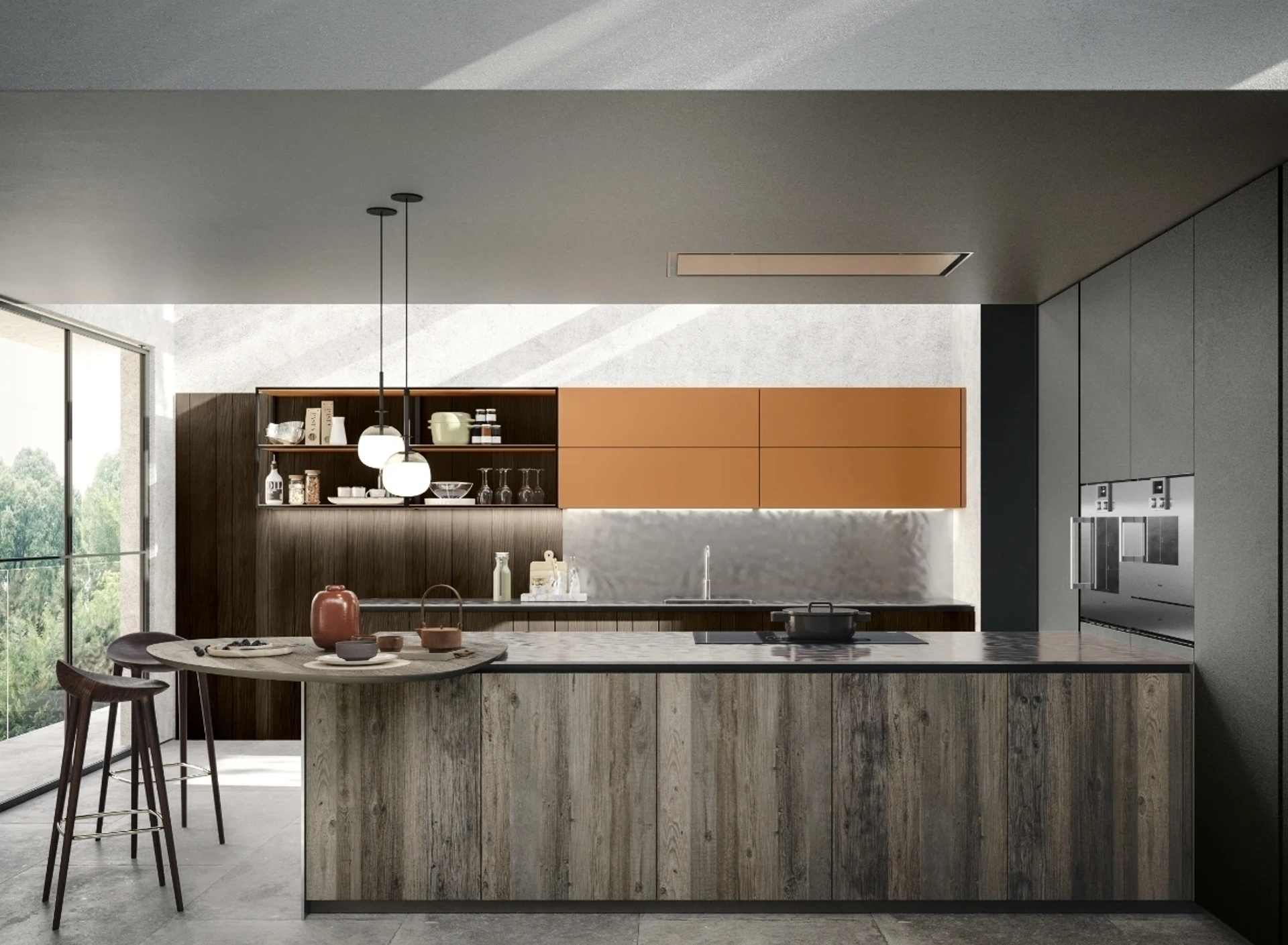Cucine con penisola Scandola: entra e scopri un mondo di design e contenuto estetico! La cucina convenzionale M07 Maestrale ti sta aspettando.