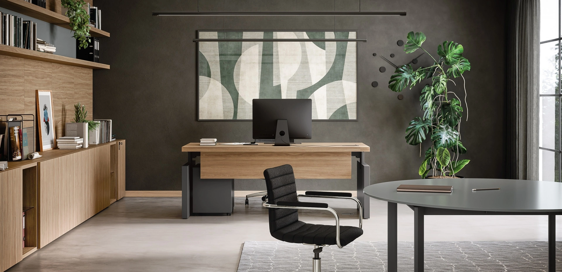 Il noto e rinomato marchio opera sempre al passo con le necessità di ciascuno, di fatto propone ogni sorta di Arredo Ufficio in melaminico. Scrivania Direzionale 01A di Cinquanta3: ideale per completare gli spazi lavorativi salvaguardando il comfort di chi ci lavora, con una buona resa estetica. Oggigiorno l’Arredo Ufficio deve soddisfare le esigenze di funzionalità e comfort per chi lavora, quelle di accoglienza e serietà prima di tutto per i clienti. Nel nostro showroom proponiamo molteplici composizioni con scrivanie direzionali Cinquanta3 in melaminico, sempre in materiali pregiati e resistenti nel tempo. Materiali pregiati, una buona resa estetica e design unico rendono riconoscibile la ricca collezione di mobili per gli ambienti lavorativi del marchio Cinquanta3.